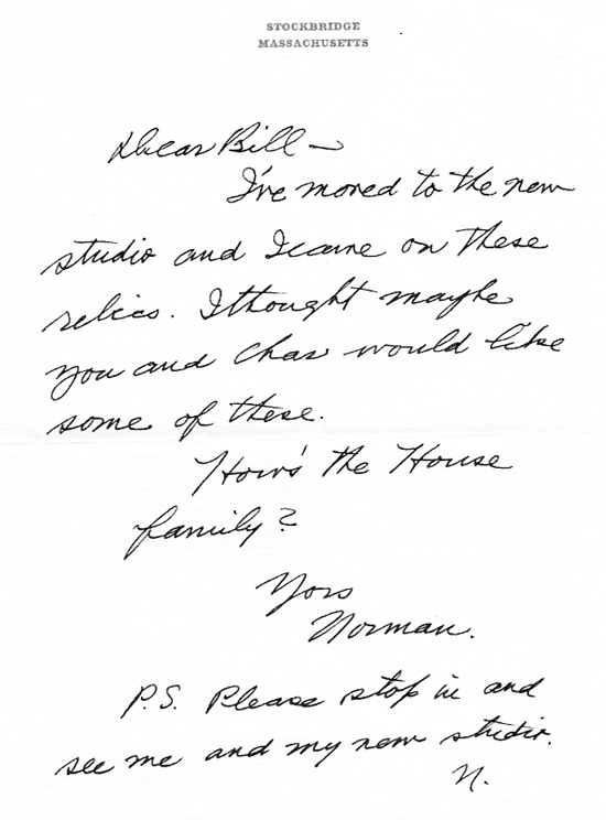 An anecdote: My mom and dad were invited up to dinner at the Rockwell's in Stockbridge, Mass. My dad told Norman they couldn't make it because his in-laws were in town. Norman said bring them along. So they all drove up to Stockbridge together. My dad introduced my grandfather (Al Cox) to Mr. Rockwell, saying, "Norm, this is my father-in-law, Al. Al this is Norm." They got along great but my grandfather had no idea who Norman Rockwell was. It's important to note here that my granddad, before he became a dairy farmer, sold Sherwin Williams paint. In fact, he got some kind of of award for selling over 100,000 gallons. Anyway, after a while, Norm says to my granddad, "C' mon Al, let's go for a walk." So they take a walk in beautiful Stockbridge and arrive downtown shortly thereafter. Norman points to a quaint building in the middle of town and says, "I painted that General Store." My grandfather said to him, "Did you use Sherwin Williams paint?" True story. My grandfather never did find out who Norman Rockwell was until he got back to his home in Minnesota. He laughed about it for days afterwards. William |