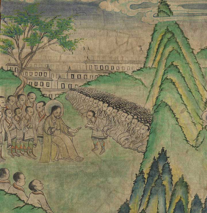 Three Scenes of Jesus (Issa) from one Tibetan Thangka