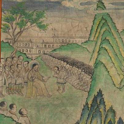Below is a fantastic picture from a Tibetan thangka. It is one scene of six. Here Jesus is with Tibetan monks in front of a Gompa or fortress monastery. To see a larger image of this picture as well as two other scenes and to learn more about this extraordinary thangka, click here.